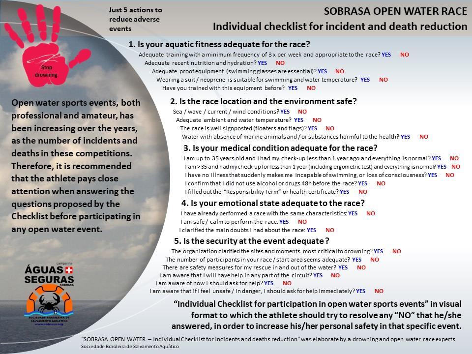 This year there were several incidents, some fatal, with athletes in open water events. Check SOBRASA recommendations