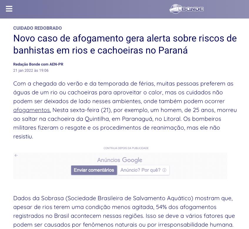 Take part of a daily information sharing about drowning, clarify your doubts about SOBRASA, join the our group on Telegram