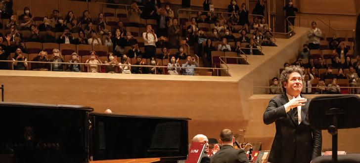 As a conductor, Dudamel is one of the few classical musicians to become a bona fide pop-culture phenomenon and has worked tirelessly to ensure that music reaches an ever-greater audience. He was the first classical artist to participate in the Super Bowl halftime show and the youngest conductor ever to lead the Vienna Philharmonic’s New Year’s Concert. He has performed at global mainstream events from the Academy Awards to Coachella, and has worked with musical icons like Billie Eilish, Christina Aguilera, LL Cool J, Ca7riel & Paco Amoroso, Laufey, Coldplay, and Nas. Dudamel conducted the score to Steven Spielberg’s new adaptation of West Side Story, and at John Williams’ personal request, he guest conducted the opening and closing credits of Star Wars: The Force Awakens. His film and television appearances include Sesame Street, The Simpsons, Mozart in the Jungle, Trolls World Tour, and The Nutcracker and the Four Realms, and in 2019 Dudamel was honored with a star on the Hollywood Walk of Fame.