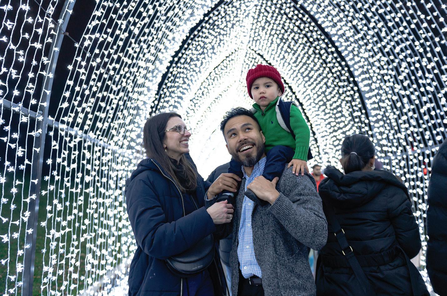 Among the livelier Instagram-friendly vignettes visitors have enjoyed have been “Candy Lane,” with a boppy ’50s feel; and the disco-themed “Rainbow Road” last year, Stewart says. Alongside new installations this year, they’ll bring back the “Winter Cathedral,” one of the most popular spots on the trail, with an arched shape wrapped in tens of thousands of white LED lights. Novy says it’s a particularly popular location for marriage proposals, of which they’ve seen many.