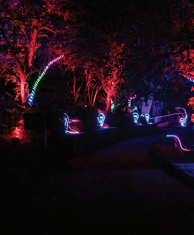 Raising awareness of the Botanic Garden—a 37-acre urban oasis housing 29 uniquely themed gardens, 5,000-plus plant species, 4 miles of trails, and even ocean views— was certainly on President and CEO Ari Novy’s mind when he decided to bring Lightscape to San Diego. “We knew high-quality holiday light shows have been revenue generators for gardens all over the world, but we didn’t want to do it in a way that wasn’t mission-aligned,” he says. “We had talked to many other providers and companies, but what convinced us to work with Lightscape is they have a commitment to the trees and plants being equal stars in the show along with the installations. For example, some are very simple: highlighting the form and shape of an