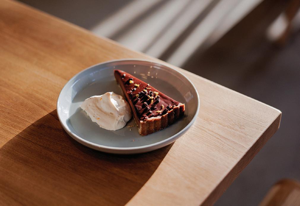 Downtown Carlsbad; the chocolate buckwheat tart at Wildland.