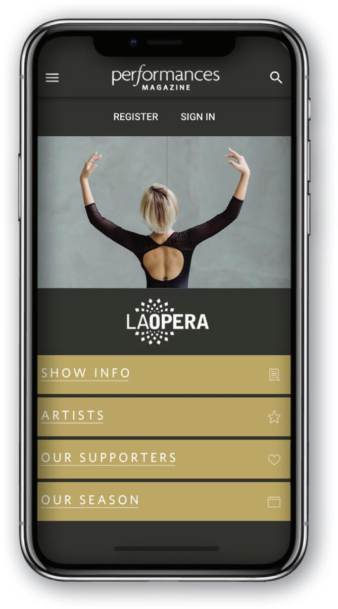 Performances’ program platform for theater shows and concerts can be accessed from any digital device