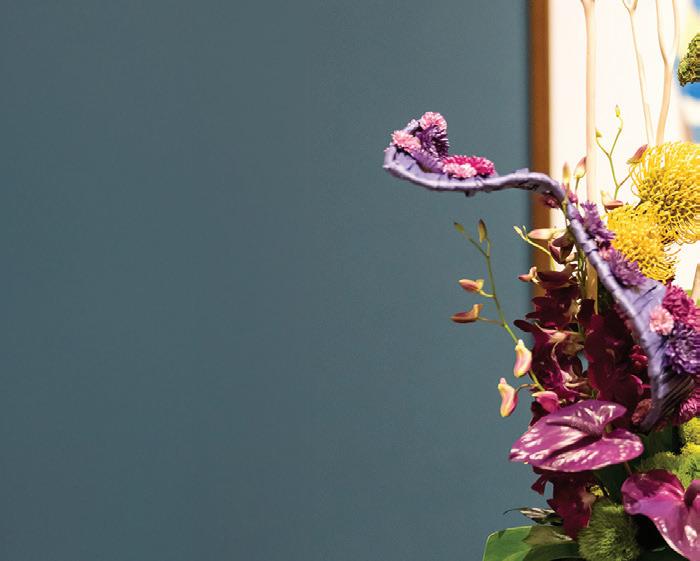 interpreted their chosen artwork. This year, the museum’s rotunda will once again be transformed by Waterlily Pond, the San Francisco-based team of Natasha Lisitsa and Daniel Schultz. These floral installation artists, known for their innovative designs, first appeared at Art Alive in 2018 and are returning this year to create a largescale installation in the SDMA rotunda.