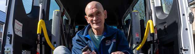 van het chauffeursbestaan. De contacten met de centrale zijn goed. Zijn collega-chauffeurs ziet hij minder maar bij de scholen is een praatje met collega’s van andere taxibedrijven altijd leuk. Het op tijd ophalen en veilig en plezierig vervoeren van passagiers staan bij hem hoog in het vaandel. Cees is gesteld op een goed onderhouden voertuig; zijn bus met inmiddels meer dan vier ton op de teller is in dat opzicht bij Juijn in goede handen.