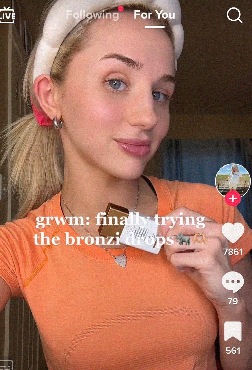 Bronzing drops are basically a liquid bronzer that can be added into your favorite moisturizer or foundation to help achieve a more glossy makeup look. They will help to instantly warm up your complexion and provide you with natural-looking radiance. Alix Earle and her TikTok