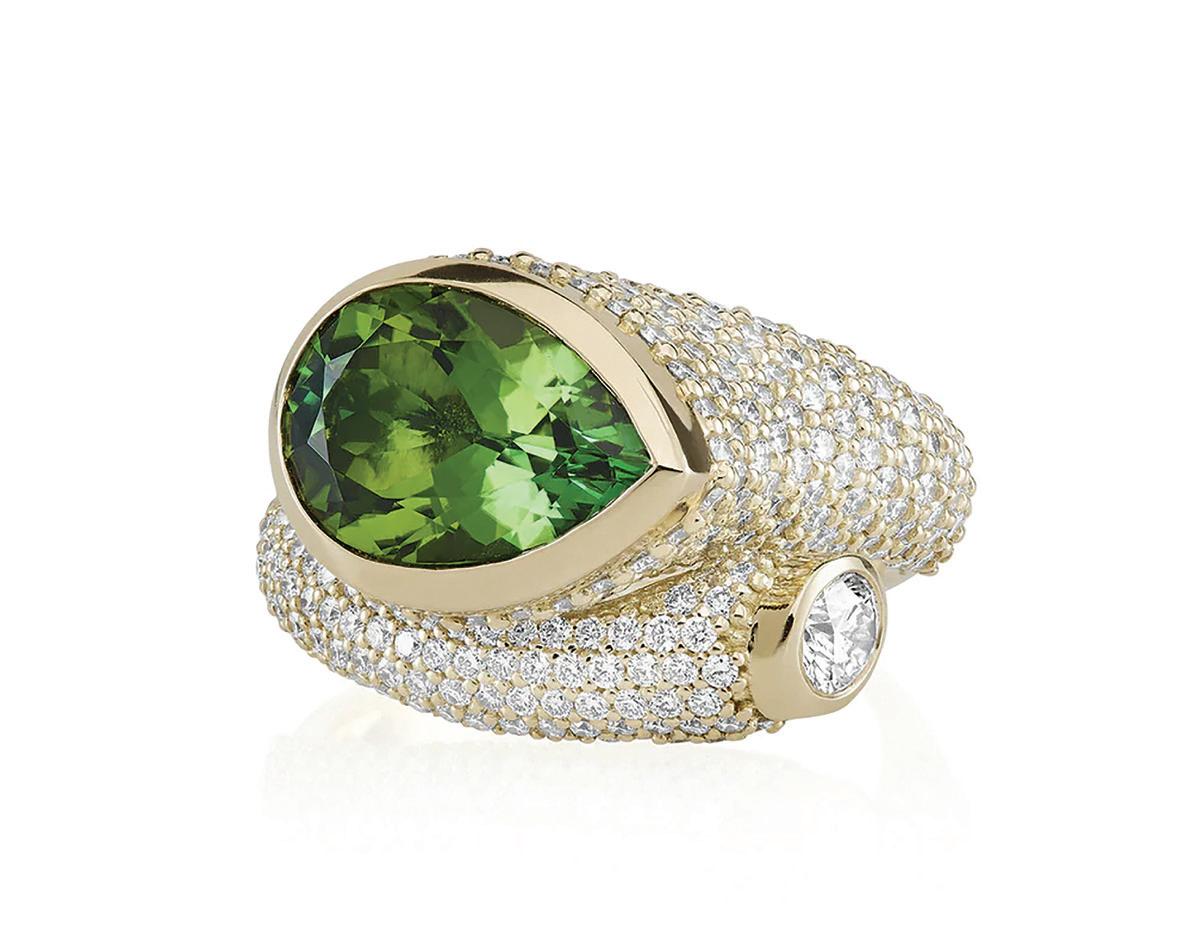 18 Karat Yellow Gold With Diamonds and Green Tourmaline