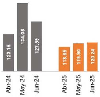 El precio promedio del II Trimestre 2025 (cUS$ 119.59 por libra) fue: