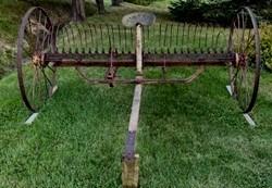 Au début des années 1900, les instruments pour l’agriculture n’étaient pas aussi modernes et confortables (roues et sièges en acier…) que ceux de nos jours. Ici, on peut voir un instrument de fanaison dont la fonction était de retourner le foin pour l’aider au séchage. Le principe était d’amasser assez de foin pour le remplir, d’actionner un levier qui faisait lever puis vider le râteau.