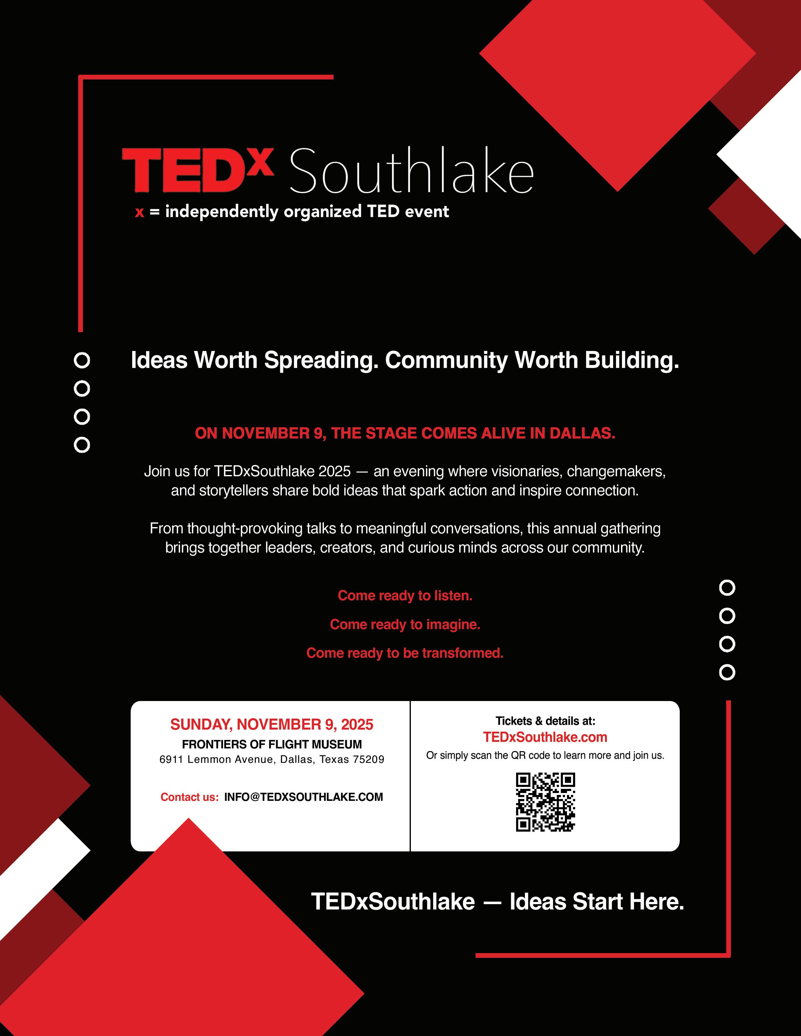 Not only does fall bring a welcome shift in season (even if the thermometer doesn’t quite agree), it also marks the start of one of our favorite times of year—fundraiser and gala season. Across North Texas, calendars fill with events that bring our community together in the best possible way— to celebrate, give back and support the causes that make a real difference. From elegant evenings to spirited charity runs and community luncheons, this season reminds us that business success and community generosity often go hand in hand. At Society Life, we’re honored to play a small part in supporting the many charitable efforts that define our region. Each year, we proudly serve as a media sponsor for some of the area’s most inspiring events—Angels Among Us GRACE Gala, American Red Cross Hats for Heart Luncheon, TEDx Southlake, North Texas SNAP Boots & Bling, SOS Serving Our Seniors Ringmaster’s Haunted Ball, PH4U Clay Shoot, and so many others throughout the year. It’s one of the things we value most—using our platform to help raise awareness for the incredible causes championed by our local nonprofit organizations. Truly Who’s Who in their own right, these organizations deserve recognition for their lasting impact and sterling reputations. Unlike for-profit companies, a nonprofit’s success isn’t measured in revenue, but in the effectiveness, transparency and heart with which it fulfills its mission.