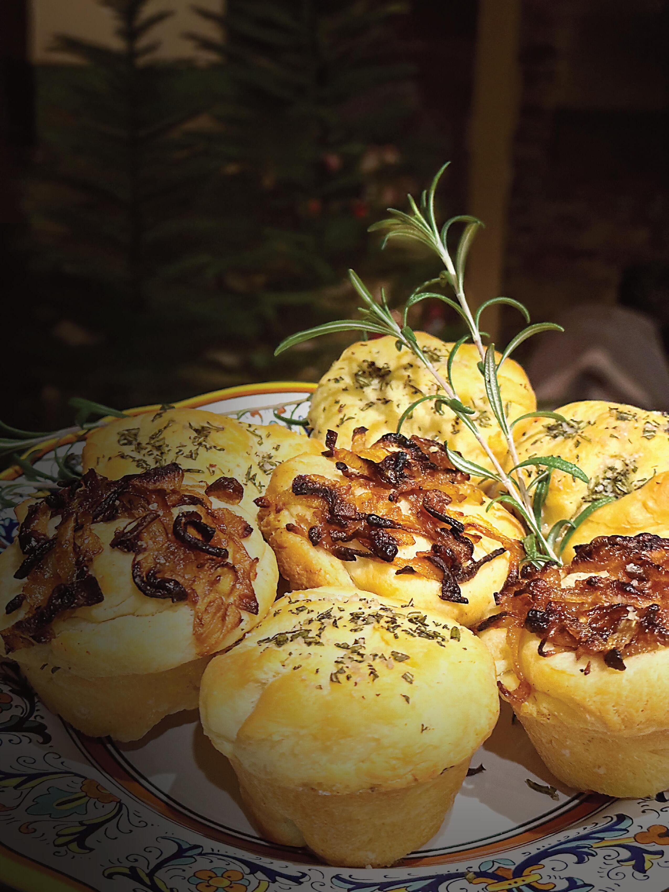 One day inspiration struck—what if focaccia went into a muffin tin? The result: irresistible focaccia muffins that can be classic rosemary or topped with endless variations like caramelized onion, pesto, mozzarella, tomato or olives. (Tip: pile onions high so they don’t burn.) Each muffin can be different, making them just as fun as they are delicious. Like all focaccia, they’re best enjoyed the day they’re made, but still tasty the next day too.