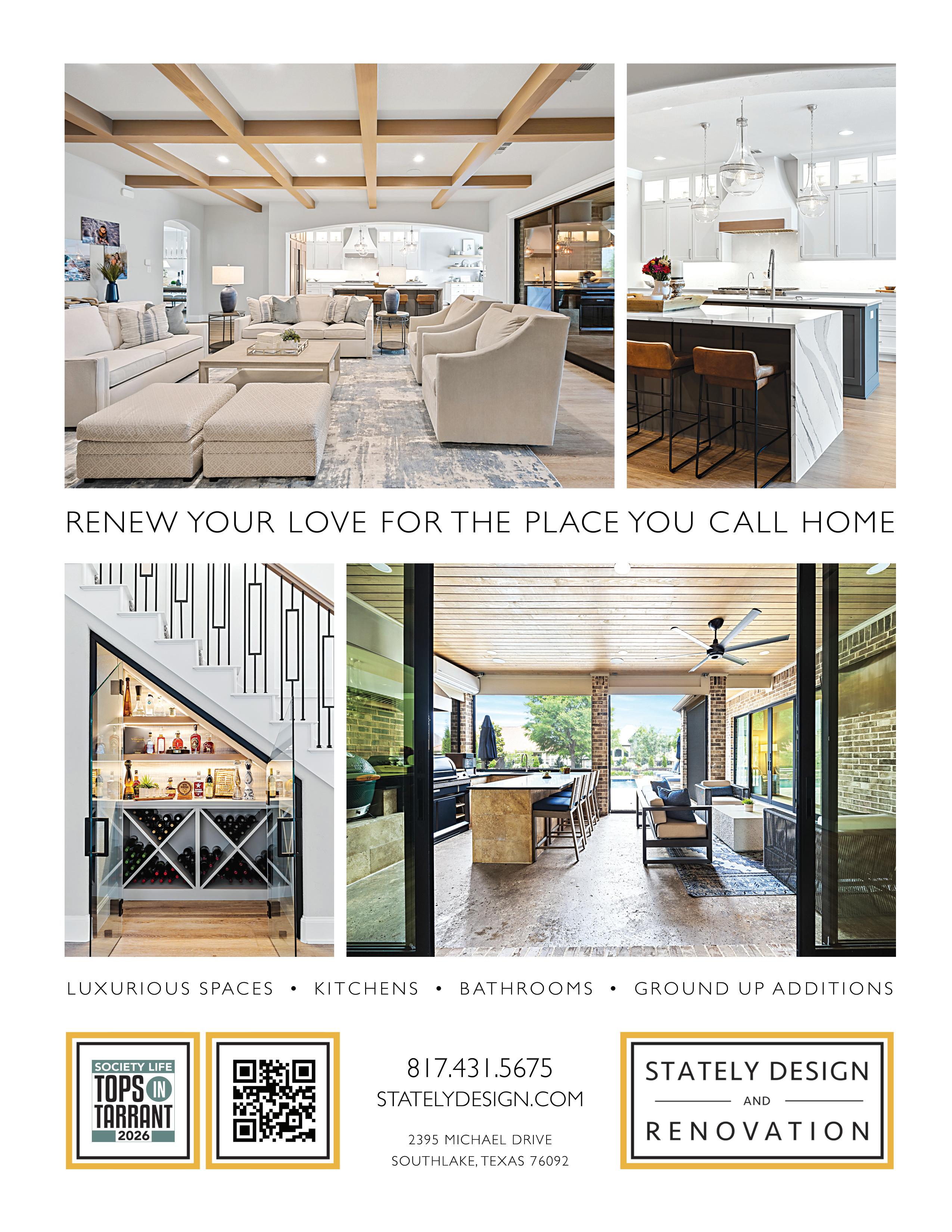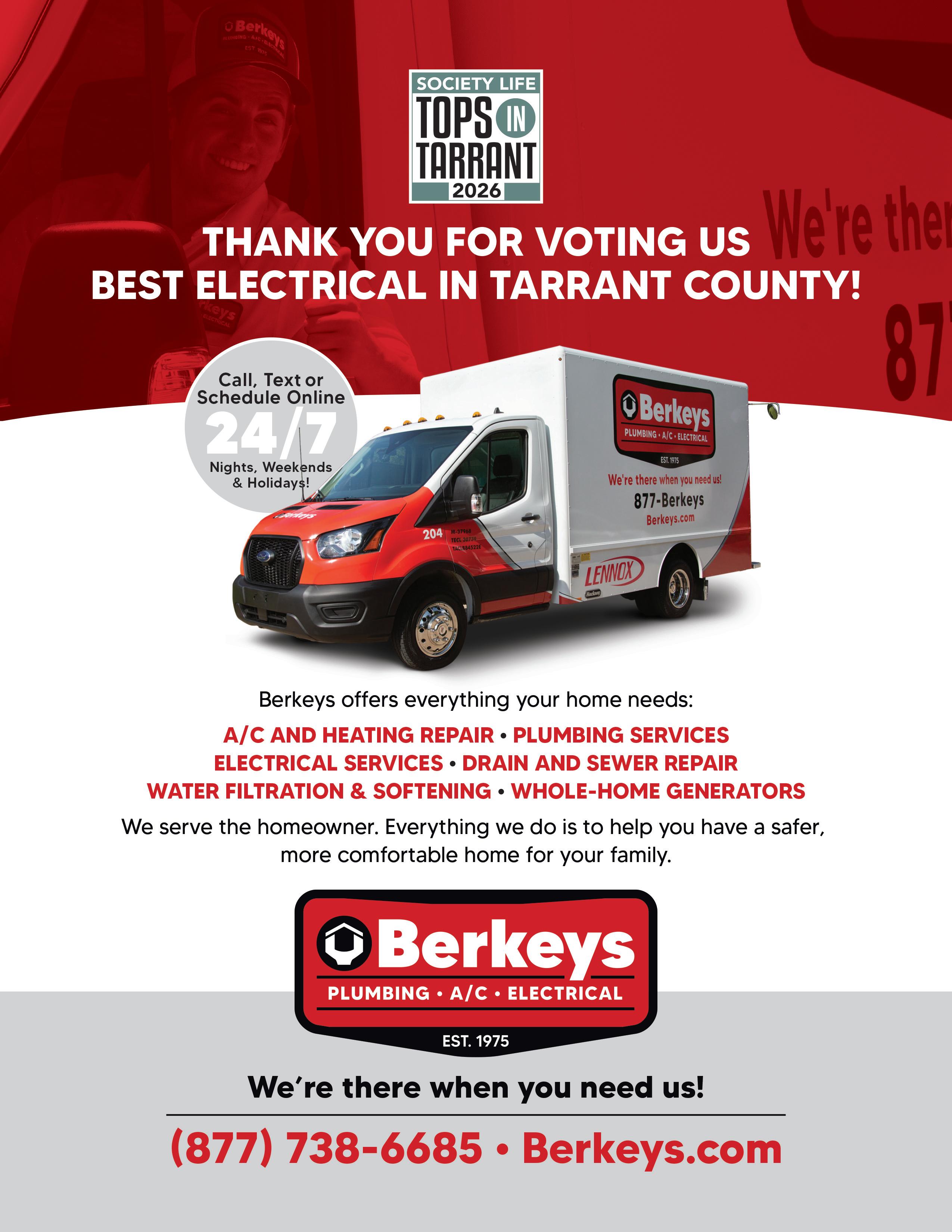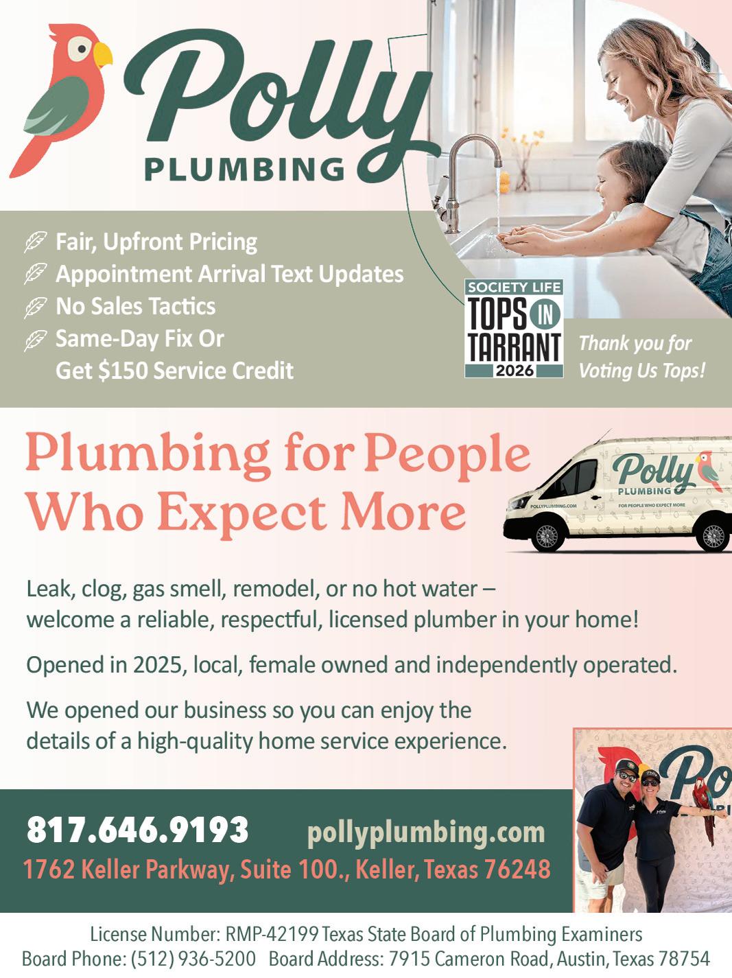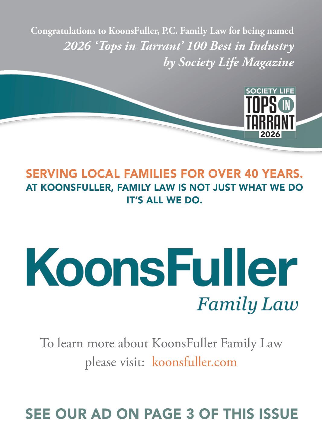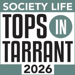 The votes are all counted—it’s time to announce the winners of our 2026 Society Life Magazine ‘Tops in Tarrant’ 100 Best in Industry. The 100 businesses listed are the final result of a community-based website survey requesting votes for the top local leaders in 100 carefully selected industries. Save this handy list for use as a quick guide to finding reputable resources for many of the businesses we use daily in and around Tarrant County. The resulting list reflects companies who received the most votes. Only the Top winner under each category is listed. Flip the page for a list of our Tops winners followed by our cover feature. Watch for the official ‘Tops’ icon above on winner’s ads and displayed proudly on plaques in businesses.