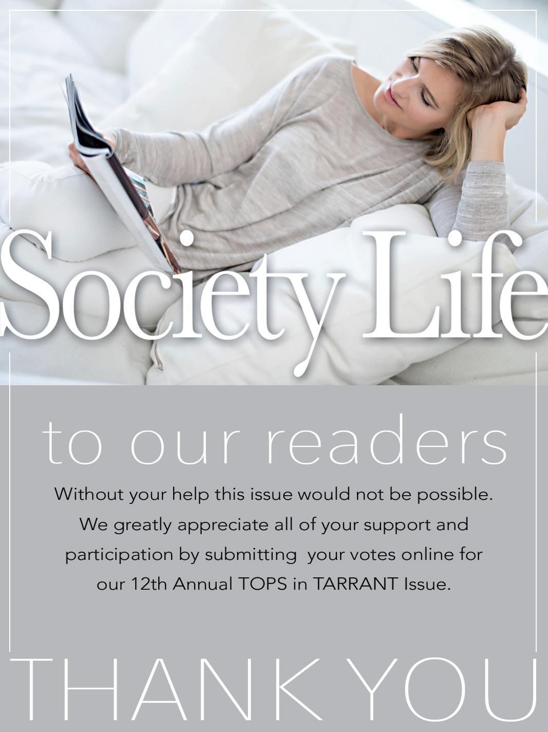 In addition to being direct mailed to a select group of local homes, Society Life Magazine can be picked up for free in the entry lobby in the free racks at these Northeast Tarrant County grocers: Market Street, Albertsons and Tom Thumb, as well as in many local businesses and chambers. If the grocery store stands are in need of restocking our latest issue, email to request a copy: info@societylifemagazine.com