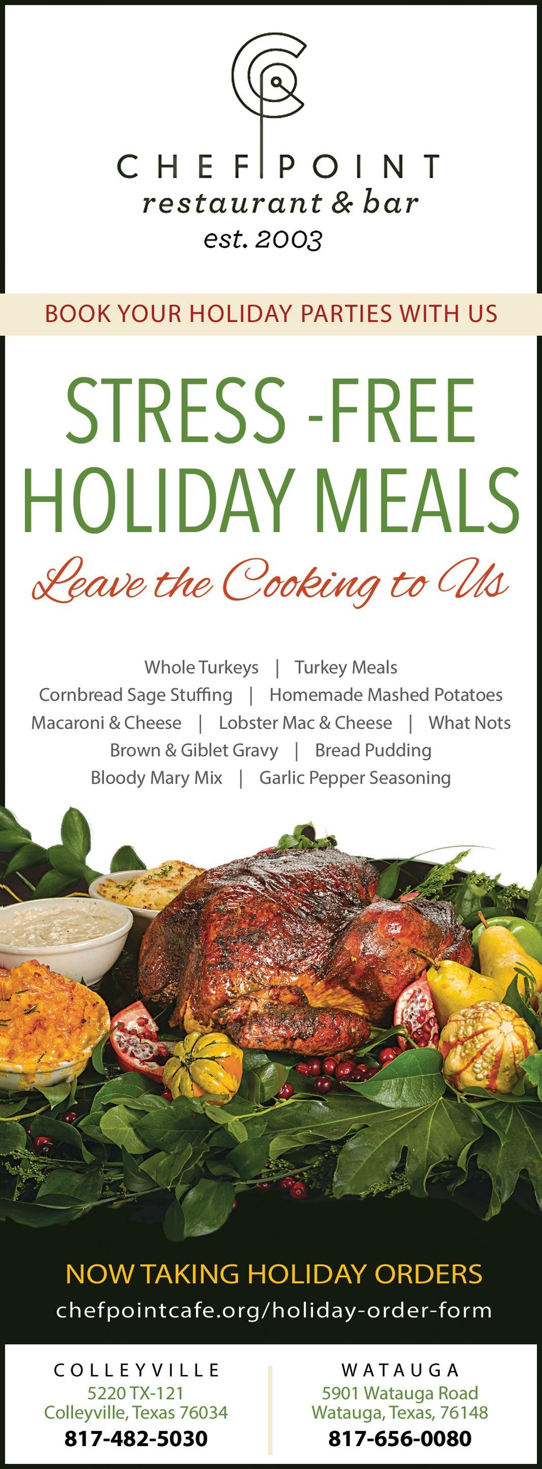 Bonefish Grill • A menu full of fresh flavors of the season and innovative dishes—specializing in seasonal fresh fish. Taste today’s freshest catch and try something new on each visit. • Southlake bonefishgrill.com $$-$$$ L (sat-sun) D (daily)