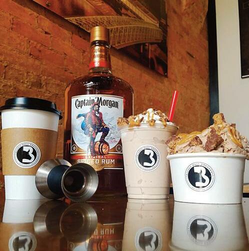 selection of specialty drink flavors that you won’t find anywhere else, they also used steamed ice cream base as their “milk.” This makes their drinks rich and velvety. And of course, for the 21 and up crowd, you can make it “buzzed” by adding your spirit of choice. My go-to is the Buzzed Bull. It’s simply espresso blended with steamed cream base and a healthy drizzle of caramel sauce. The simplicity allows you to enjoy the steamed cream base with the caramel adding just a little extra. Their suggested buzz with this one is bourbon. Other specialty drinks include the Girl Scout—a thin mintesque creation that pairs well with Peppermint Schnapps Feeling extra spicy, try your hand at the Bonfire— a blend of espresso, steamed cream base, marshmallow and cinnamon