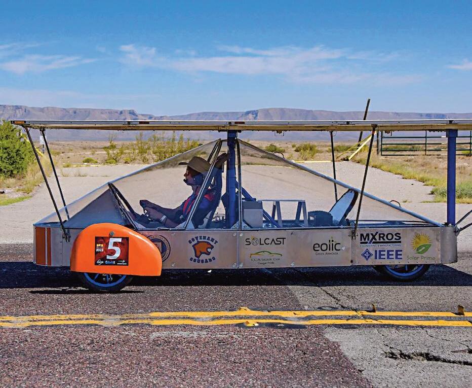 The team has competed in six Solar Car Challenges— four track races at Texas Motor Speedway and two crosscountry races. Over three years, the CCA Solar Car Team has won more division championships in the Solar Car Challenge than any other school in the nation. Driving their solar car, Cougar Spirit, they courageously covered 440.3 miles of the available 490.3-mile race route, fueled solely by the blazing Texas and New Mexico sunshine.