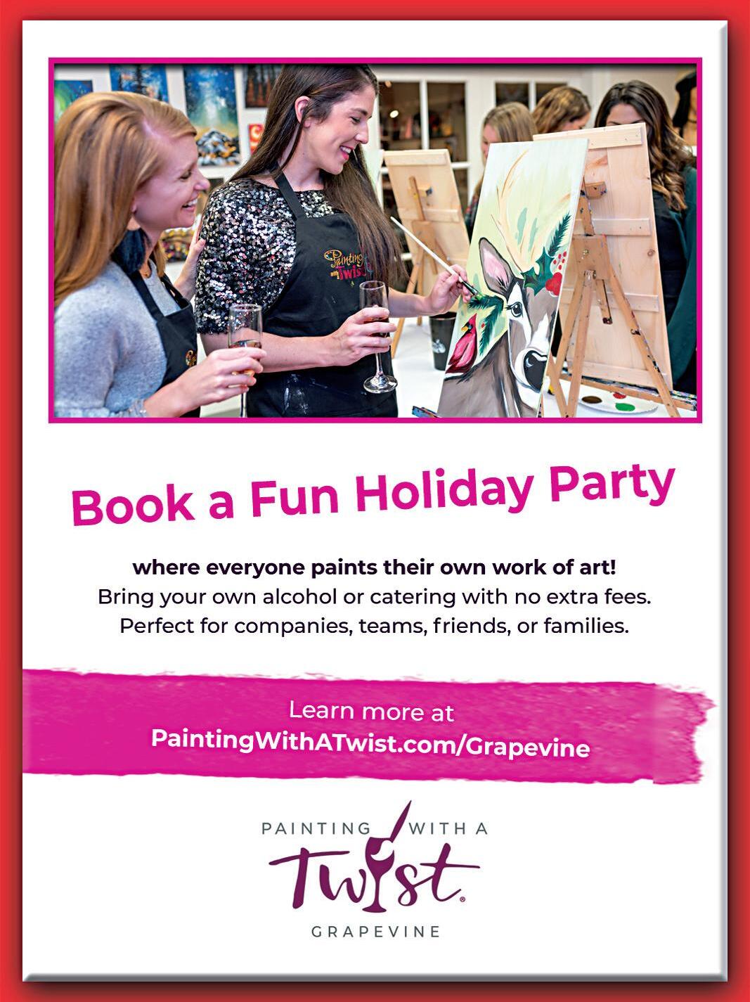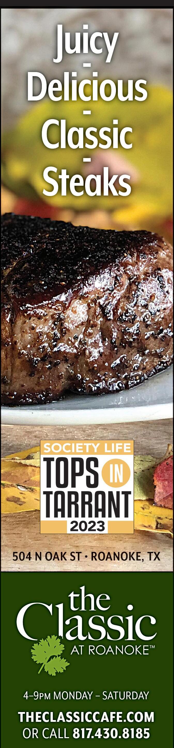Del Frisco’s Grille • Spend the day shopping the square before meeting for dinner and drinks. Luxurious dining room or patio. Local flavor—diverse menu has something for everyone. • Southlake delfriscosgrille.com $$-$$$ (Brunch) L D