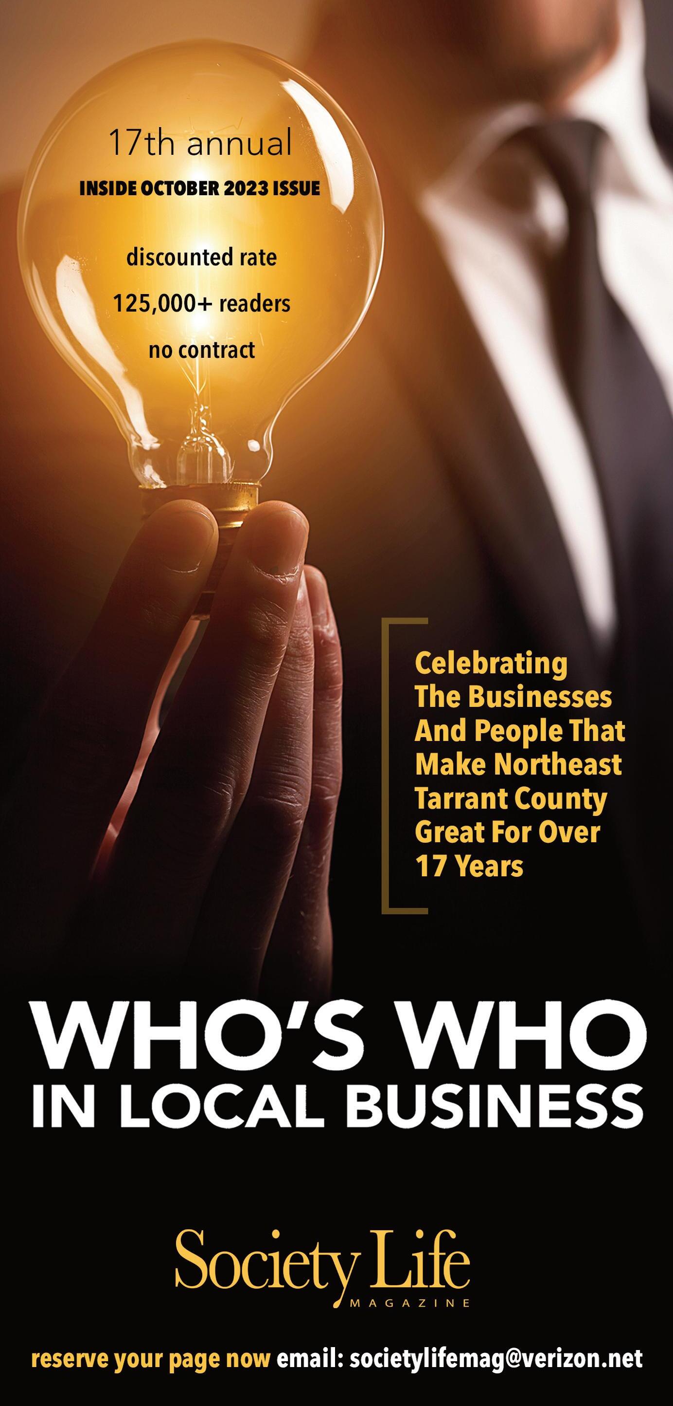 In addition to being direct mailed to a select group of local homes, Society Life Magazine can be picked up for free in the entry lobby in the free racks at these Northeast Tarrant County grocers: Market Street, Albertsons and Tom Thumb, as well as in many local businesses and chambers. If the grocery store stands are in need of restocking our latest issue, please request a copy at: societylifemag@verizon.net