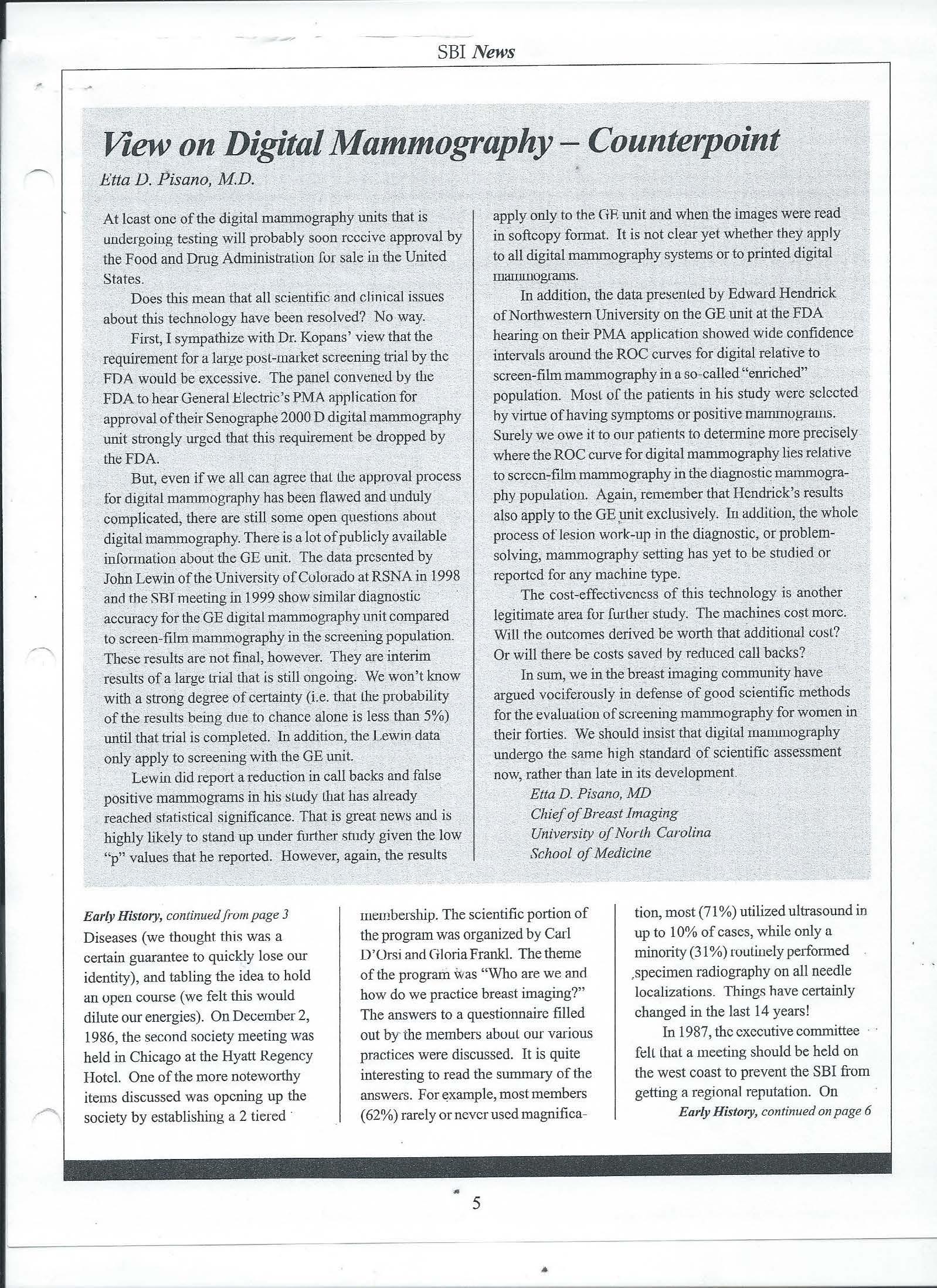 an original SBI newsletter article by Dr. Homer from January 2000. We have several other exciting articles, like a description of RAD-AID’s strong work in Nigeria and synopses of recent meetings of the Canadian Society of Breast Imaging and the European Society of Breast Imaging. Our Inclusion Diversity Equity Alliance Committee colleagues also share ways to create an inclusive environment for non-English-speaking patients.