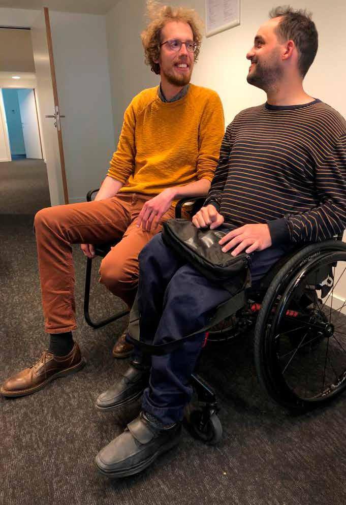 “Het besef kwam: als we hier nu iets mee willen bereiken, kunnen we dat niet alleen,” vervolgt Wouter. “Daarom zijn we met KVG een werk groep gestart. De centrale vraag: hoe kunnen we samen met ervaringsdeskundigen de situa tie bij de NMBS verbeteren?