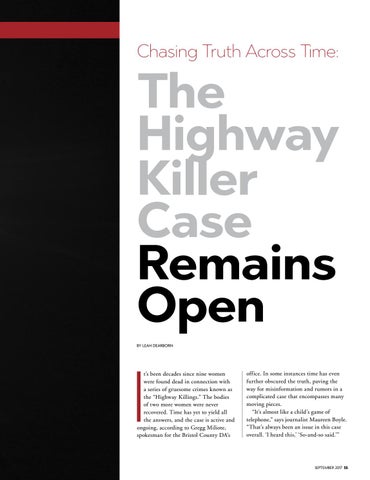 The Highway Killer Case Remains Open BY LEAH DEARBORN