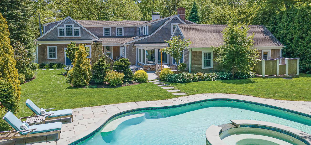 Seaside elegance is found throughout this custom shingled Colonial with spectacular views of Buzzards Bay and the Islands beyond! Accessed by elevator or dramatic floating staircase, the open concept living/kitchen/dining room features cathedral ceilings and a wall of sliders to the deck with expansive water views. Gourmet kitchen offers granite countertops, custom cabinetry...the adjacent dining/living areas include a wet bar, Sub Zero wine cooler and multiple seating options. The fireplaced primary suite has custom built ins, walk-in closet, and deck access with stunning views. The lower level features three additional bedrooms, an office, and a full bath. The resort-like backyard boasts a kidney shaped gunite pool, spa, and a private cabana house with bedroom, kitchenette and full bath. With deeded ocean access, this home is perfect for year-round living, or the ideal summer retreat!! A blend of formal and informal spaces offers French doors to terraces and park-like gardens, set just a stone’s throw from the Village! Contact Will Milbury at 508.525.5200.