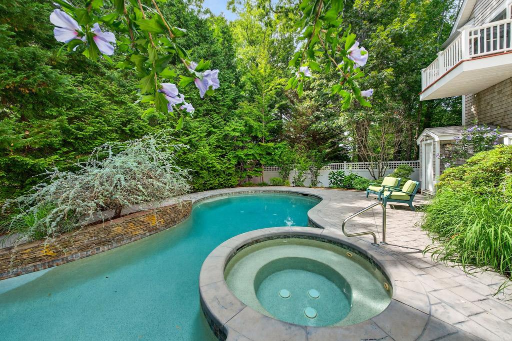 Rare Marion Village offering! This unassuming, custom-finished 4,700 sq. ft. Cape Cod-style home offers 5 bedrooms, 4.5 bathrooms, with an expansive first-floor primary suite, great room, living room, dining room, sunroom, and large mudroom. The 0.42-acre lot offers a backyard oasis featuring a Gunite pool, hot tub, outdoor fireplace with a sitting and dining area, outdoor shower, and stunning, professional landscaping, providing privacy and tranquility.