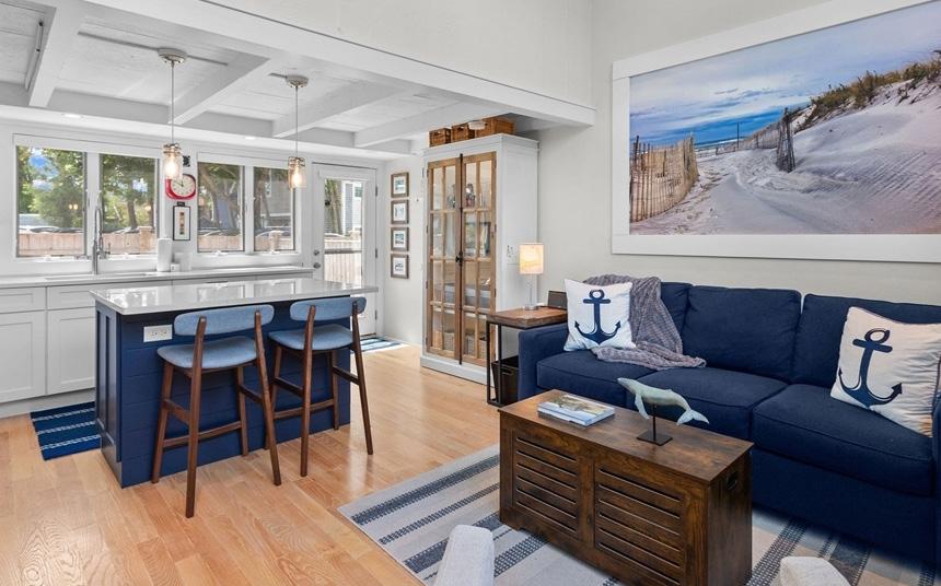Impeccably renovated two-story townhouse blends modern sophistication with coastal charm.