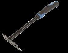 Resharpenable forged carbon steel with hardended and tempered striking ends