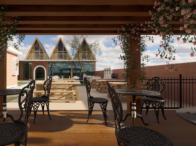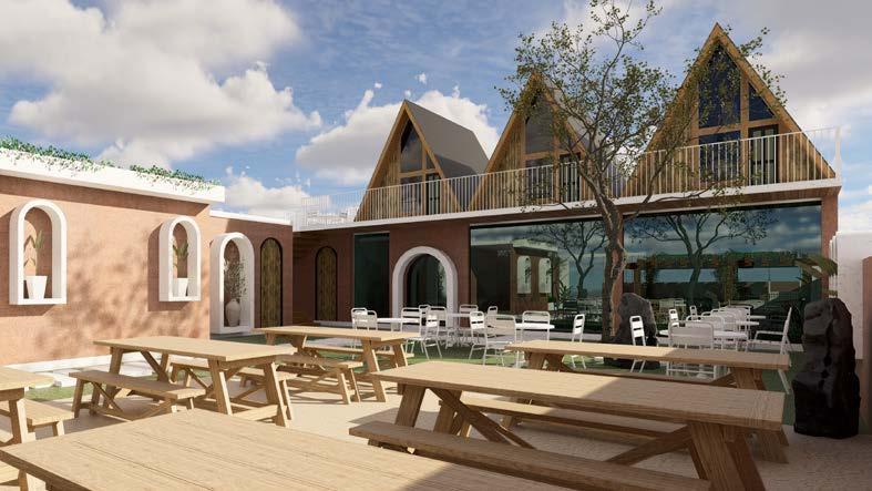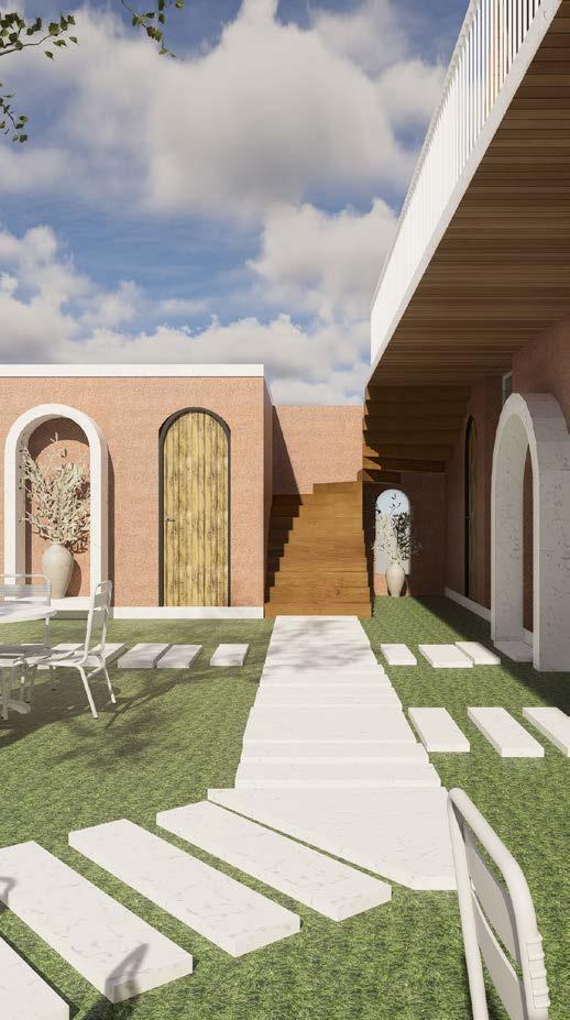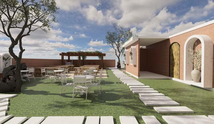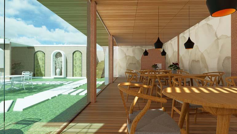 This cafe in Auroville blends natural beauty with minimalist, modern architecture to create a serene, open-air space. Lush greenery, earthy tones, and a central tree anchor the design, enhancing the connection to nature. The cafe’s sleek white furniture contrasts with wooden accents, striking a balance between modern and rustic. The layout promotes seamless flow, fostering a tranquil atmosphere for relaxation and social gatherings. Designed with sustainability in mind, this cafe reflects Auroville’s philosophy of environmental and social harmony.