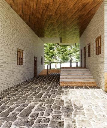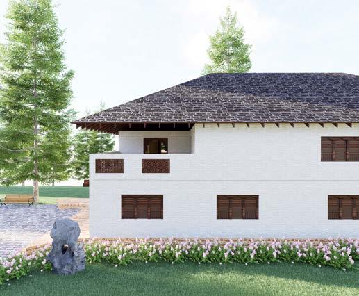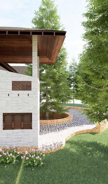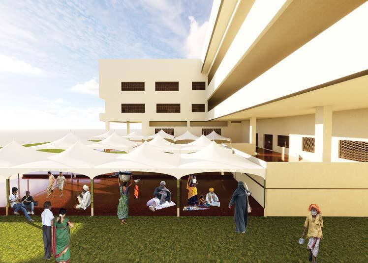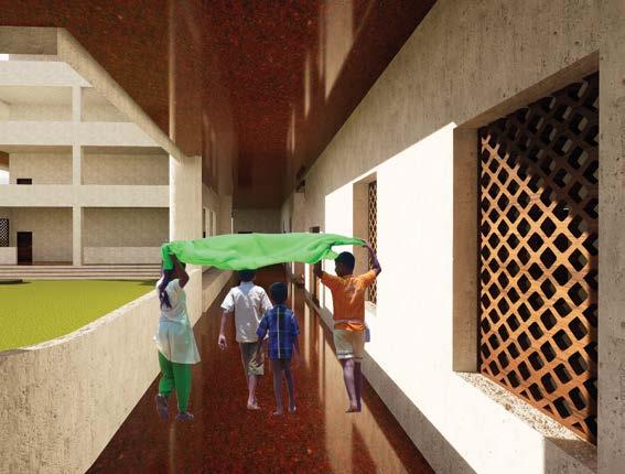This project is a dining hall for the children of BGS Institute, inspired by the form of a tree. The central column represents the tree’s trunk, connecting to the roof truss, which symbolizes branches, creating an open, shaded space beneath.