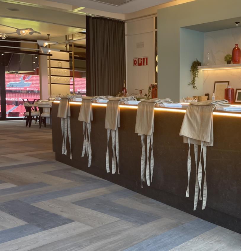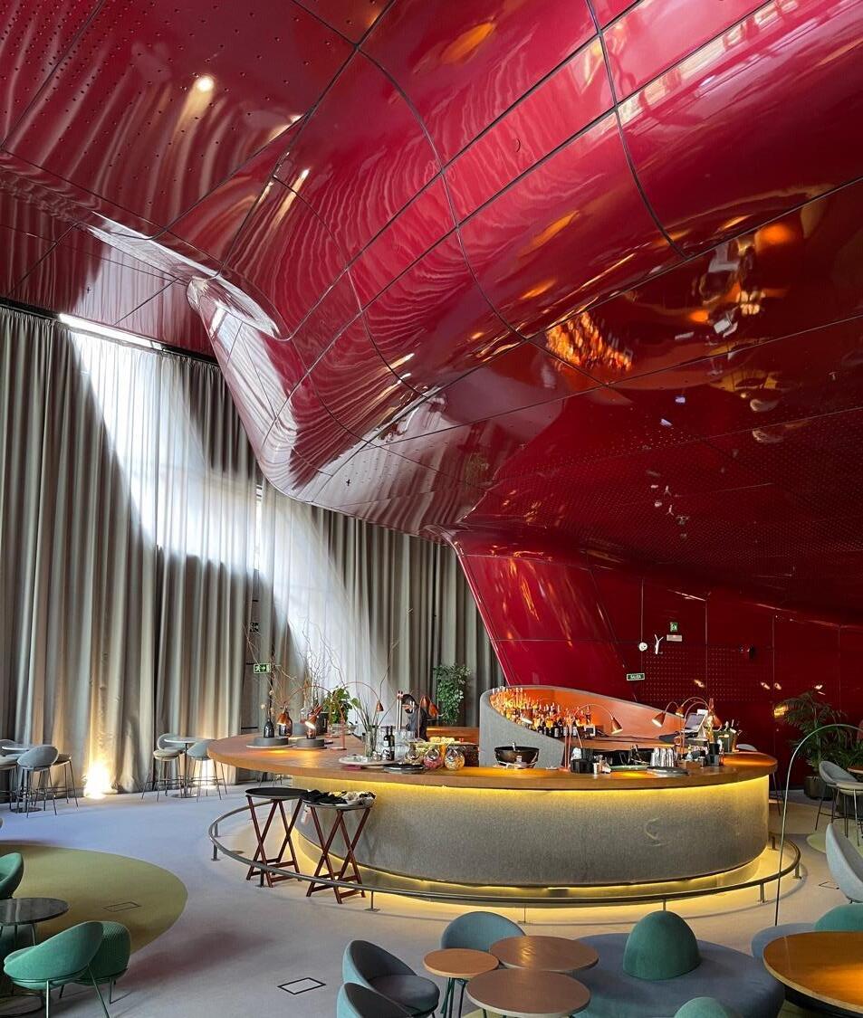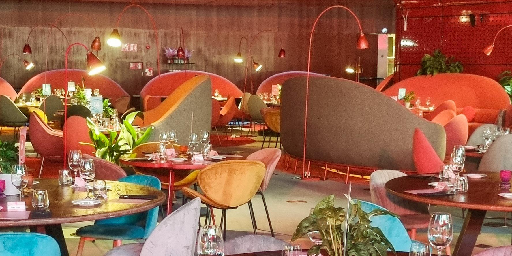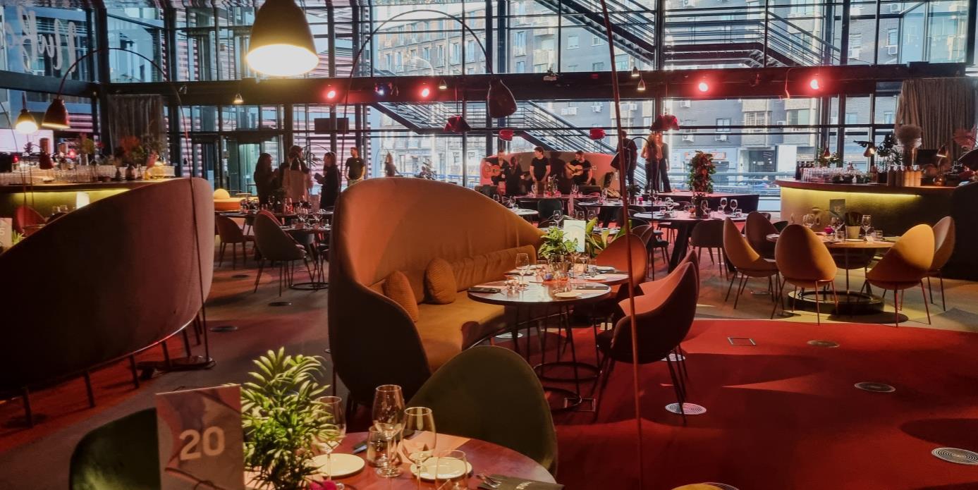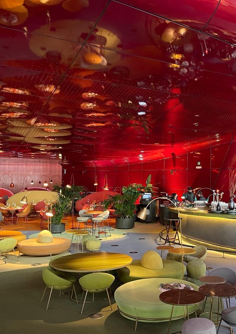 It can be found in almost one thousand square metres of an avant-garde venue located under the mythical red dome designed by the French genius Jean Nouvel for the expansion of the Museo Reina Sofía. The interior of the restaurant, the work of the architecture and design studio More-co, by Paula Rosales, is a flexible system, which uses the concept of the fractal to structure the space.