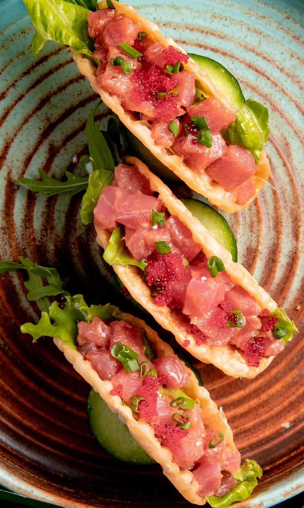 Bluefin tuna, ajoblanco soup and flying fish roe