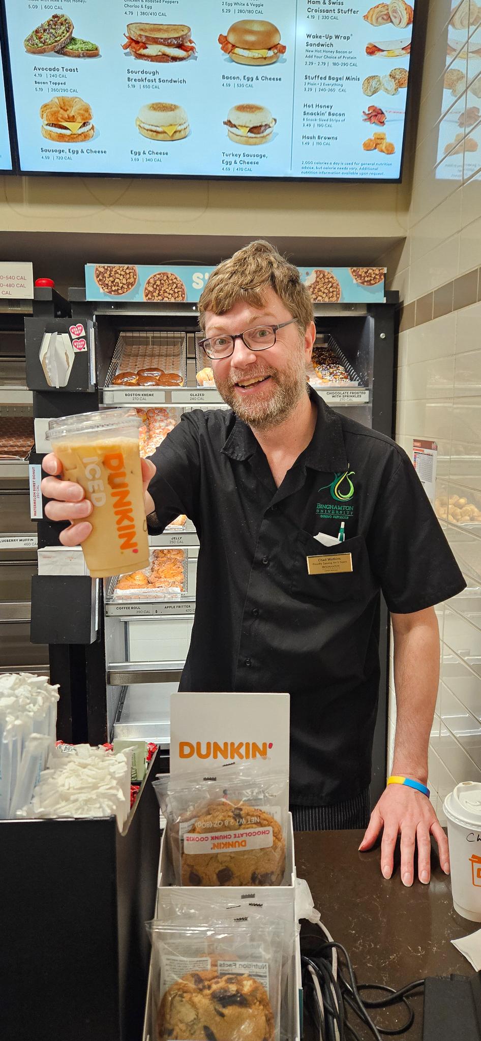 At Binghamton University, students happily head over to the Dunkin’ counter, even if the line is long. And it’s not because of the coffee (or even the Boston cream donuts). They’re all there for Chad.
