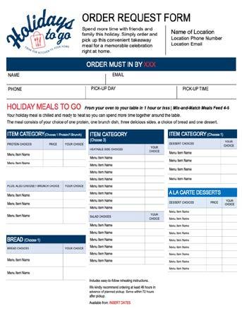 • Guests use Holidays to Go Order Form to place orders.