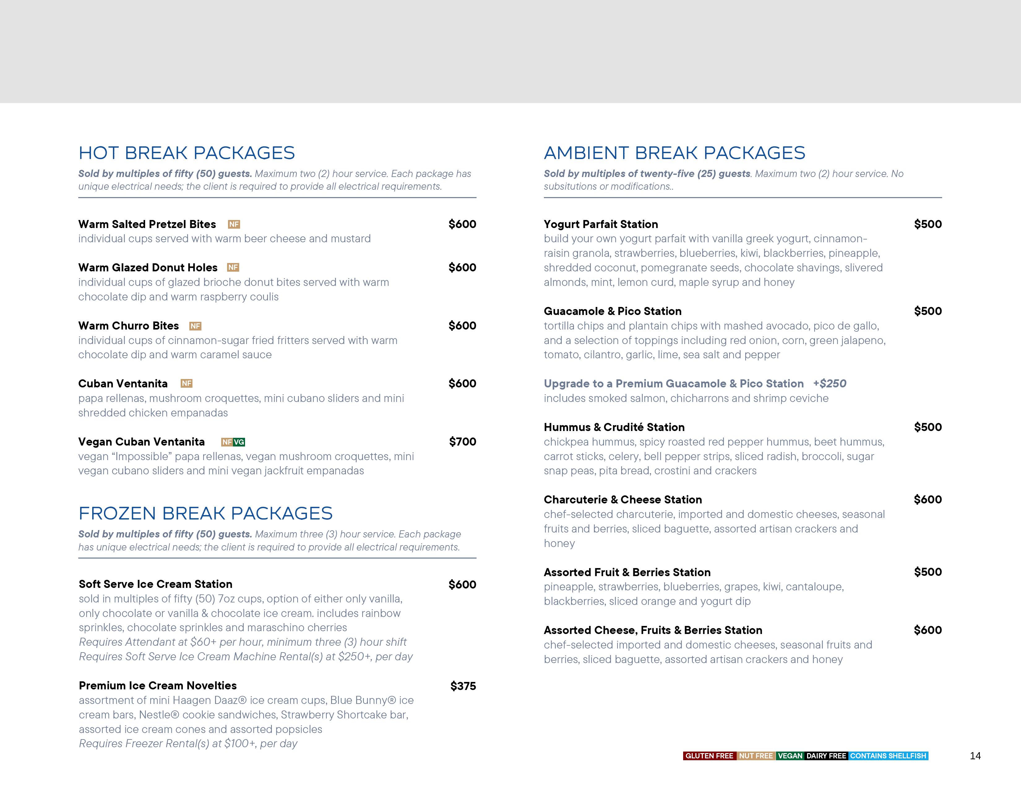 2026 Miami Beach Convention Center Catering Menu