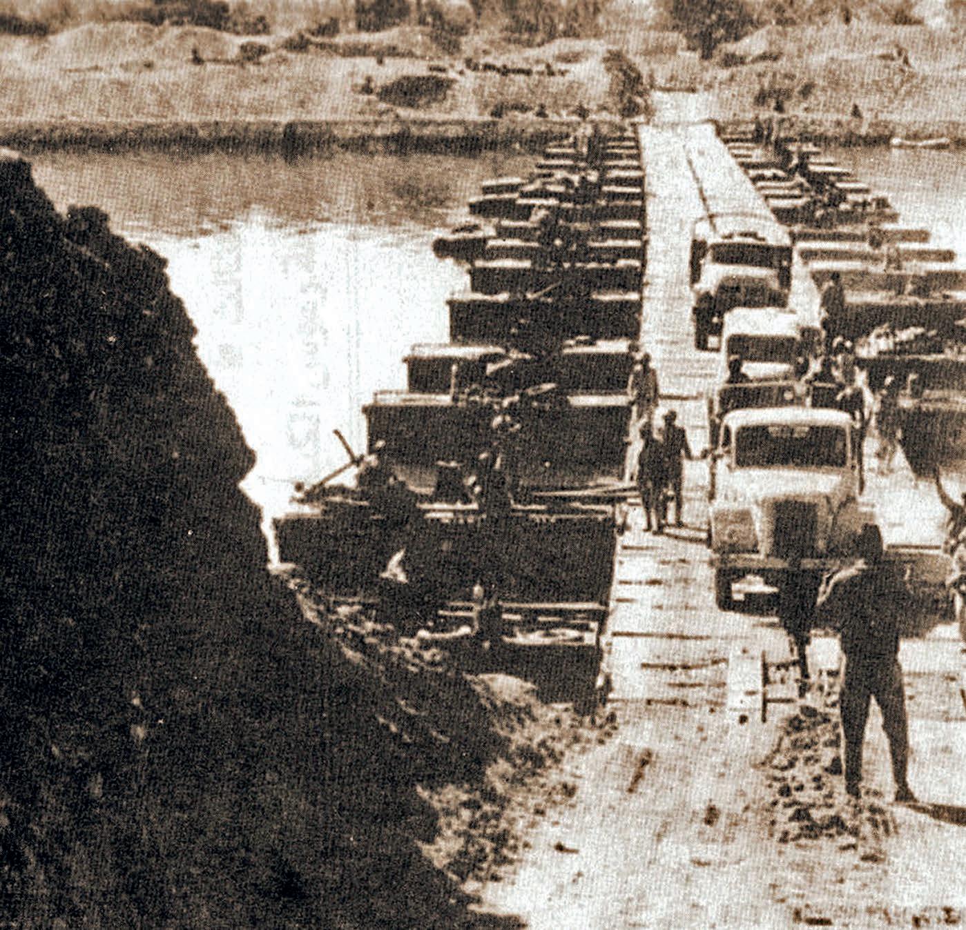 Egiptuse väed rajamas pontoonsilda üle Suessi kanali 7. oktoobril 1973.