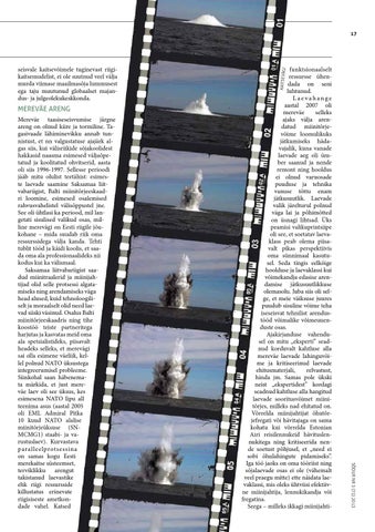 Mereväe taasiseseisvumise järgne areng on olnud kiire ja tormiline. Tagasivaade lähiminevikku annab tunnistust, et nn valgustatuse ajajärk algas siis, kui välisriikide sõjakoolidest hakkasid naasma esimesed väljaõpetatud ja koolitatud ohvitserid, aasta oli siis 1996-1997. Sellesse perioodi jääb mitu olulist teetähist: esimeste laevade saamine Saksamaa liit vabariigist, Balti miinitõrjeeskaadri loomine, esimesed osalemised rahvusvahelistel välisõppustel jne. See oli ühtlasi ka periood, mil langetati sisulised valikud osas, milline merevägi on Eesti riigile jõukohane – mida suudab riik oma ressurssidega välja kanda. Tehti tublit tööd ja käidi koolis, et saada oma ala professionaalideks nii kodus kui ka välismaal. Saksamaa liitvabariigist saadud miinitraalerid ja miinijahtijad olid selle protsessi algatamiseks ning arendamiseks väga head alused, kuid tehnoloogiliselt ja moraalselt olid need laevad siiski väsinud. Osalus Balti miinitõrjeeskaadris ning tihe koostöö teiste partneritega harjutas ja kasvatas meid oma ala spetsialistideks, piisavalt headeks selleks, et merevägi sai olla esimene väeliik, kellel polnud NATO üksustega integreerumisel probleeme. Siinkohal saan häbenemata märkida, et just mereväe laev oli see üksus, kes esimesena NATO lipu all teenima asus (aastal 2005 oli EML Admiral Pitka 10 kuud NATO alalise miinitõrjeüksuse (SNMCMG1) staabi- ja varustuslaev). Kurvastava paralleelprotsessina on samas kogu Eesti merekaitse süsteemset, terviklikku arengut takistanud laevastike ehk riigi ressursside killustatus erinevate riigisiseste ametkondade vahel. Katsed
