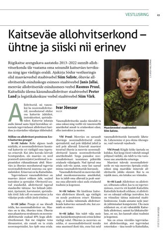 Kaitseväe allohvitserkond – ühtne ja siiski nii erinev Riigikaitse arengukava aastateks 2013–2022 sunnib allohvitserkonda üle vaatama oma seisundit kaitseväes tervikuna ning igas väeliigis eraldi. Ajakirja Sõdur vestlusringis olid maaväeveebel staabiveebel Siim Saliste, õhuväe allohvitseride esinduskogu esimees staabiveebel Janis Jallai, mereväe allohvitseride esindusmees veebel Rasmus Pruul, Kaitseliidu ülema käsundusallohvitser staabiveebel Peeter Land ja logistikakeskuse veebel staabiveebel Siim Värk.