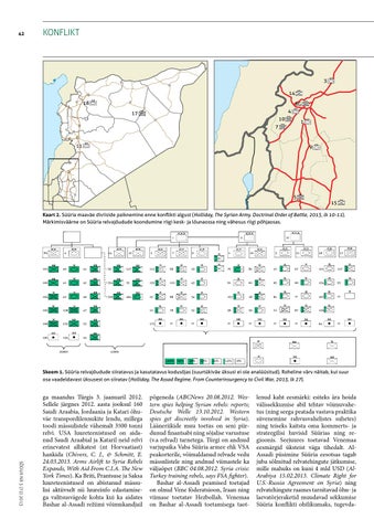 Skeem 1. Süüria relvajõudude siiratavus ja kasutatavus kodusõjas (suurtükiväe üksusi ei ole analüüsitud). Roheline värv näitab, kui suur osa vaadeldavast üksusest on siiratav (Holliday, The Assad Regime. From Counterinsurgency to Civil War, 2013, lk 27).