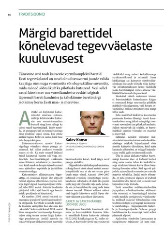 rtikkel on kirjutatud kaitseministri määruse ootuses, millega kehtestatakse kaitse väe uue vormielemendina baretid ning koos sellega ka täiesti uued baretimärgid. Tuleb nentida, et arenguspiraal on teinud täisringi ning jõudnud tagasi sinna, kus olime aastaid tagasi. Koht on sama, kuid tase juba hoopis kõrgem. Läänemere-äärsete maade kaitse vägedega võrreldes oleme praegu ainukesed, kel sellist peakatet vormide juures ei ole. Ka meie suured liitlased britid kasutavad barette (sh väga eriilmeliste baretimärkidega), rääkimata ameeriklastest, sakslastest ja prantslastest, kuid need on hoopis teised teemad oma ajalooliste aspektide ja juriidiliste situatsioonidega. Kaitseministri allkirjastatava õigusaktiga on jõudmas lõpule ühe altpoolt tulnud algatuse elluviimise epopöa, millega tegid algust Scoutspataljoni võitlejad juba 2002. aastal. Autorile teadmata põhjustel tollel ajal baretti ega baretimärki pataljonile ei kinnitatud. Ka sumbus 2004. aastal esitatud samasuguse pataljoni bareti kasutuselevõtu ettepanek. Barettide ja nende märkide loomine sai lõpliku hoo alles siis, kui „skautide” kolmandal katsel 2011. aastal liitus omapoolse baretisooviga luurepataljon ning teema arenes kogu kaitseväge puudutavaks. Artikli autorile on teada veel paar ülekaitseväelist barettide