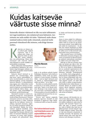 aitseväes on viimase aasta jooksul palju räägitud väärtustest. Tegu ei ole millegi päris uuega, sest kaitseväes kehtis ju alates 2007. aastast eetikakoodeks oma põhimõtetega. Oleme nüüd sõnastanud veidi erinevaid väärtusi ning rõhutatud on nende vajalikku seotust praktilise teenistusega. Oleme rääkinud ka väärtustepõhisest ja inimkesksest juhtimisest, kus otsustamine ning hinnangute andmine enesele, teistele ja tegudele toimub kindlate põhimõtete alusel. Kaitseväe ühised väärtused on nimetatud uues sisemäärustikus, mille järgi ausus, vaprus, asjatundlikkus, ustavus, koostöövalmidus ja avatus koos käitumisreeglitega peavad kujundama kaitseväe käitumis- ja juhtimiskultuuri ning tagama meie valmisoleku teenida Eesti riiki. Kaitseväe väärtusi on nimetatud ka kaitseväe personalistrateegias. Seal on küll üks väärtus vähem – puudub „avatus” – ning „asjatundlikkus” on asendunud „professionaalsusega”. Nimetatud terminid on täiesti arusaadavad, enamgi veel – need väärtused tunduvad liiga elementaarsed. Väärtuste nimetamise erinevus neis kahes dokumendis probleemi ei tekita. Raskused algavad siis, kui hakkame väärtusi kirjeldama, täpsemalt sõnastama, selgitama või otsima teenistusest näiteid, mis neid ilmestaksid. Näiteks, kas kaitseväelased suudavad kirjeldada ausust või asjatundlikkust rahu- ja sõjaaja lahinguväljal? Kas hinnates alluvaid, neid kiites või karistades lähtutakse nendest väärtustest või peame siiski hindama ka mingeid teisi põhimõtteid? Minu