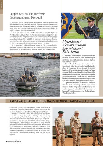 Lõppes seni suurim mereväe õppekogunemine Mere-siil 27. septembril lõppes Põhja-Tallinnas Miinisadama linnakus pea kaks nädalat väldanud õppekogunemine Mere-siil. Õppekogunemisele kutsutud laevakaitsemeeskondade jaoks kulmineerus väljaõpe praktiliste harjutustega merel, mille abil saavutati valmidus tegutsemaks ühtse meeskonnana, et vajadusel kaitsta nii tsiviil- kui sõjalaevu. Samal ajal reservväelaste väljaõppega Tallinnas harjutati Kaitseväe Ühendatud Õppeasutuste Tartu matkekeskuses staabiüksustega mereoperatsioonide juhtimist ning koostöös mitmete ametkondadega kriisi- ja sõjaaegseid protseduure. Mere-siil 2018 oli Eesti mereväe seni suurim õppekogunemine, kuhu olid kutsutud mereväe reservstruktuuri kuuluvad laevastiku 81. ning mereväebaasi 82. üksusesse kuuluvad reservväelased. 16.-27. septembrini väldanud õppusel osales ligi 200 reservväelast, tegevväelast, ajateenijat ja kaitseliitlast. Harjutustel osalesid ka mereväe partnerid politsei- ja piirivalveametist, veeteede ametist ning riigikantseleist.