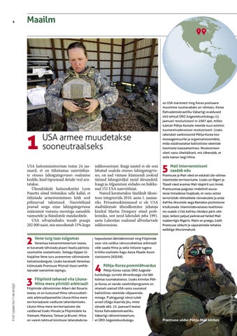 USA kaitseministeerium teatas 24. jaanuaril, et on tühistamas naisvõitlejate otseses lahingutegevuses osalemise keeldu, kuid täpsemaid detaile veel aru tatakse. Ühendriikide kaitsesekretäri Leon Panetta sõnul töötatakse selle kallal, et tühistada armeeteenistuses kõik sool põhinevad takistused. Naisvõitlejad peavad seega enne lahingutegevusse määramist vastama meestega samadele vaimsetele ja füüsilistele standarditele. USA relvajõududes teenib praegu 202 000 naist, mis moodustab 15% kogu
