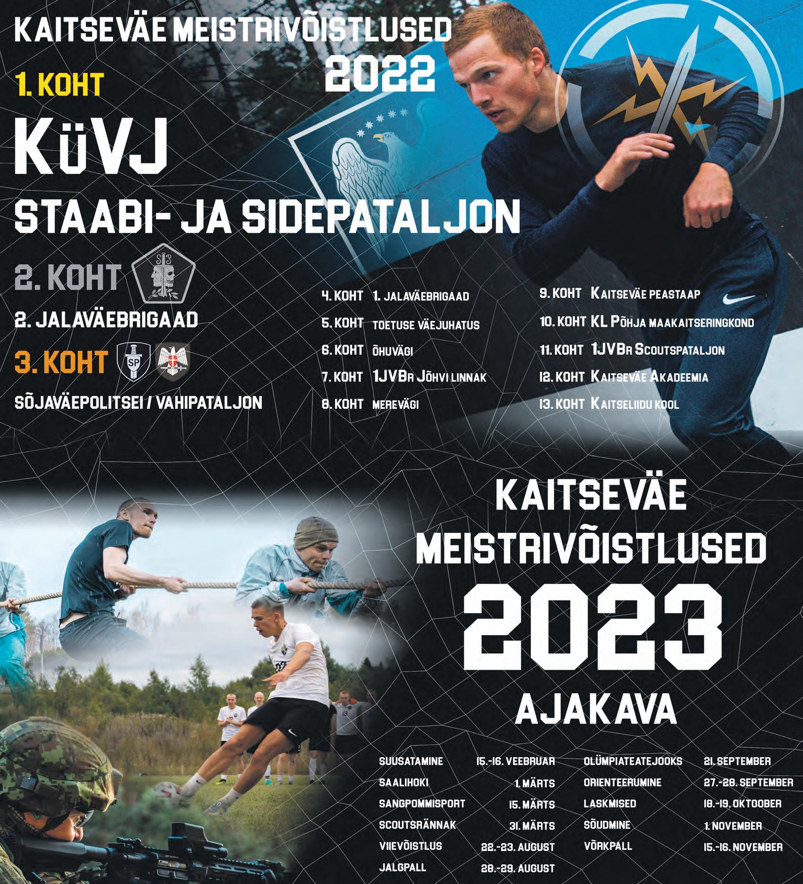 Kui sel aastal pani võistlustele lõpppunkti korvpall, siis 2023. aastal on selleks spordialaks võrkpall. Samuti lülitub kaitseväe meistrivõistluste kavva saalihoki. „Me hakkame võistkondlikke spordialasid igal aastal välja vahetama. Iga aasta valitakse kolm pallimänguala, milles meistrivõistlusi pidama hakatakse. Mida rohkem võistkondlikke spordialasid kaasata, seda suurem võimalus on erinevate alade harrastajatel oma üksuse lippu kaitseväe meistrivõistlustel kõrgel hoida.“