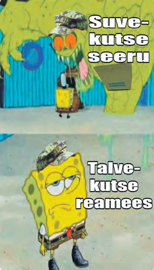 Hommikul, kui kell lööb seitse, ronib kogu üksus alla ja rivistab ennast üles. Vastutav paneb rivirongi liikuma, 50 meetrit marssi, korra jõuab k arjuda „Karp korda!“, ja olemegi söökla ees. Entusiasmiga sisse, kuid nähes, et krõbinaid jälle pole, kaob kogu motivatsioon.
