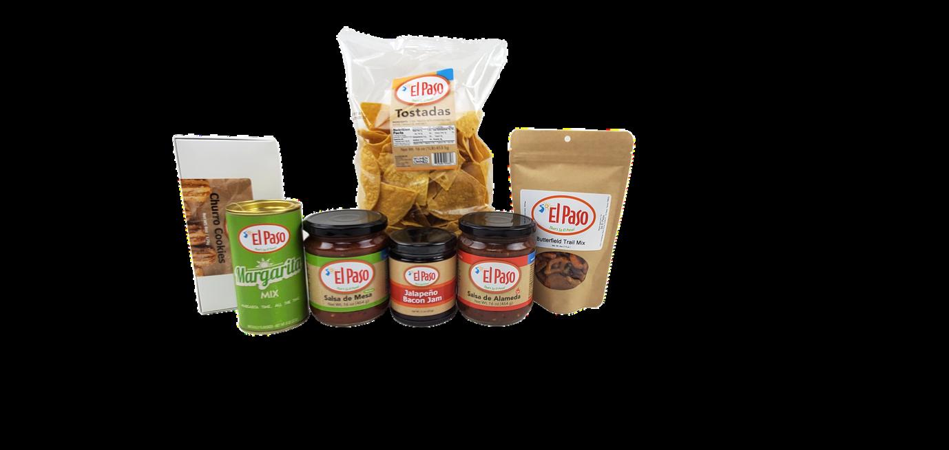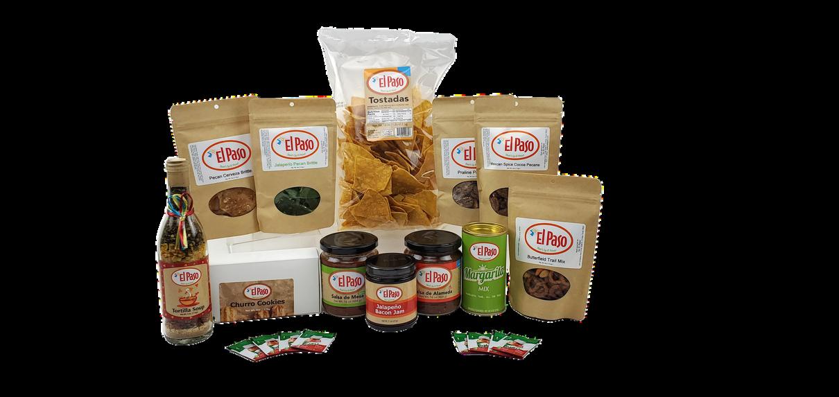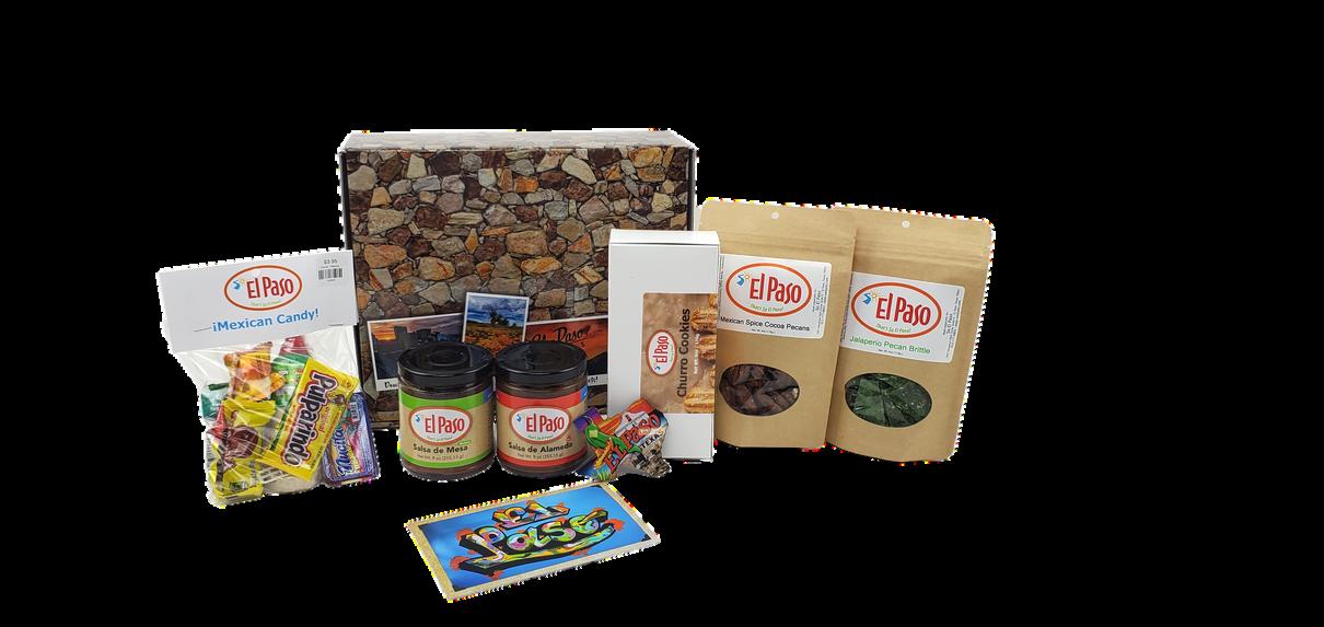 Boxes Missing El Paso S a l s a d e M e s a ( 9 o z ) S a l s a d e A l a m e d a ( 9 o z ) J a l a p e ñ o P e c a n B r i t t l e ( 4 o z ) M e x i c a n S p i c e C o c o a P e c a n s ( 4 o z ) E l P a s o P o s t c a r d C h u r r o C o o k i e s M e x i c a n C a n d y B a g E l P a s o A c r y l i c M a g n e t E l P a s o P o l a r o i d B o x