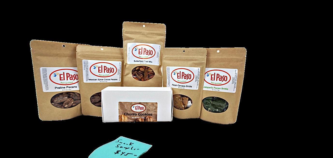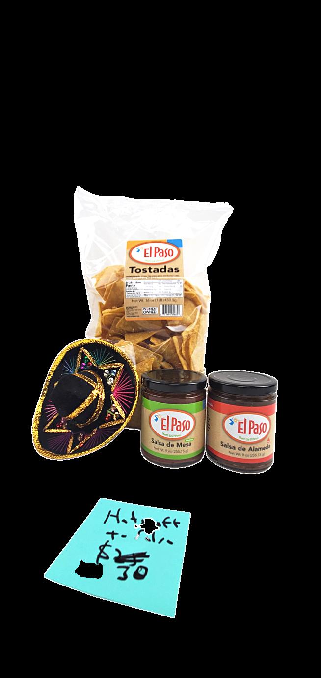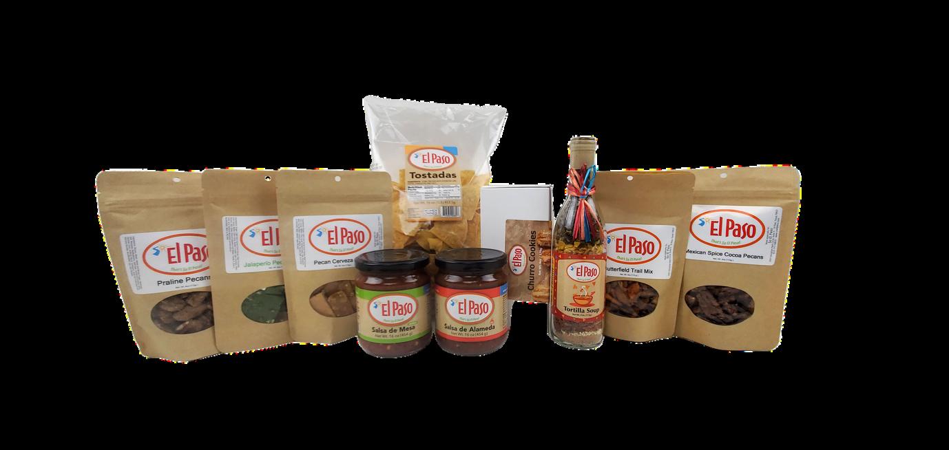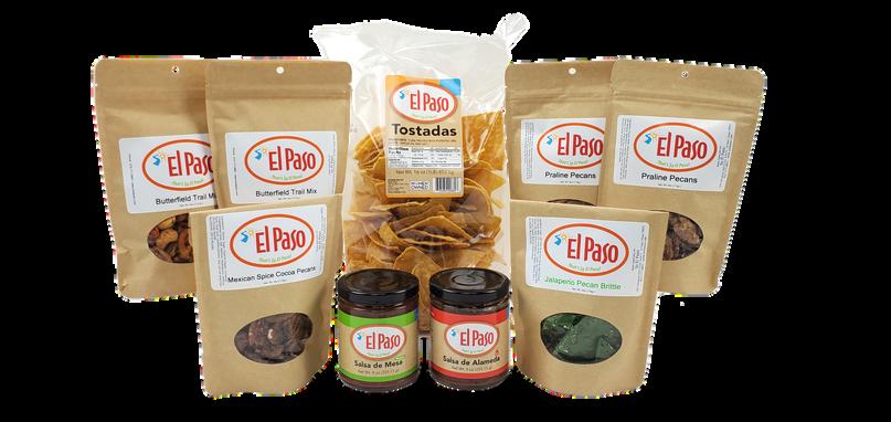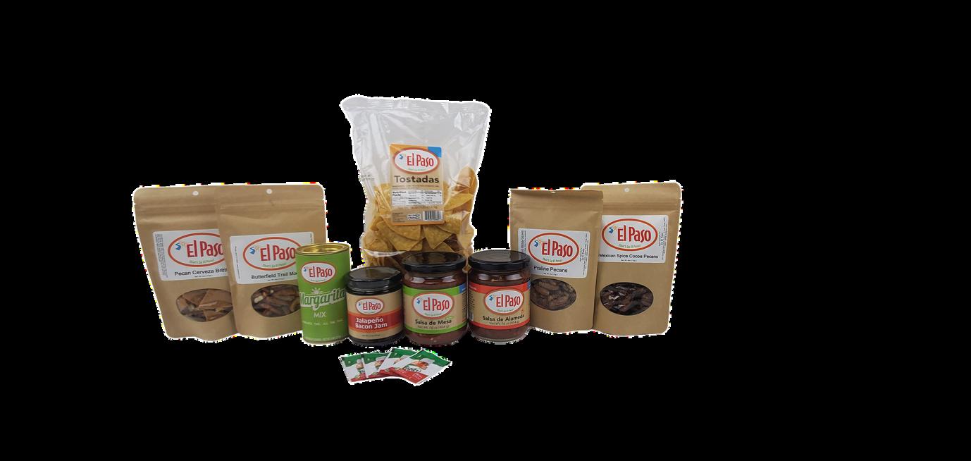 S a l s a d e M e s a ( 9 o z ) S a l s a d e A l a m e d a ( 9 o z ) ( 2 ) B u t t e r f i e l d T r a i l M i x ( 4 o z ) ( 2 ) P r a l i n e P e c a n s ( 4 o z ) J a l a p e ñ o P e c a n B r i t t l e ( 4 o z ) M e x i c a n S p i c e C o c o a P e c a n s ( 4 o z ) 1 T o s t a d a s