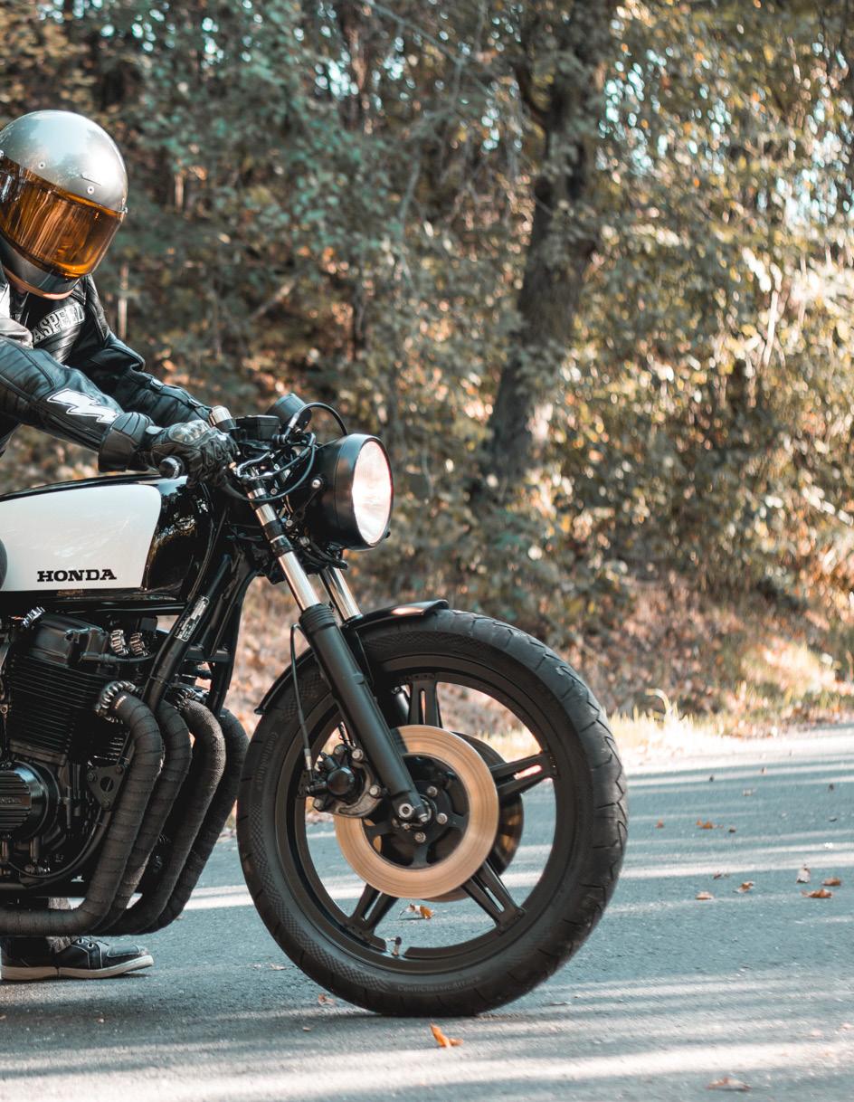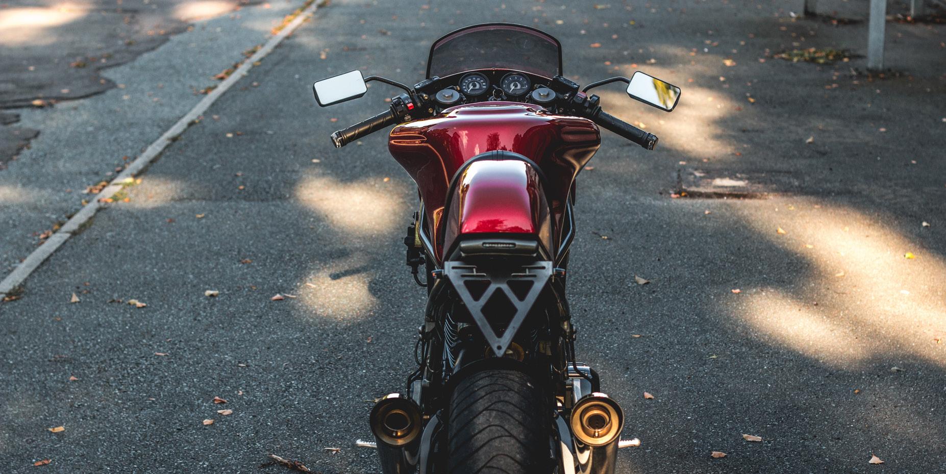 Customization is Café Racer’s trademark! You can always expect to see custom details in the paint, the modified parts and the amount of unusual metal work. Custom, retro-style leather jackets, custom vintage helmets, gloves and the REDUCTION to a minium is what defines a Café Racer and its riders!