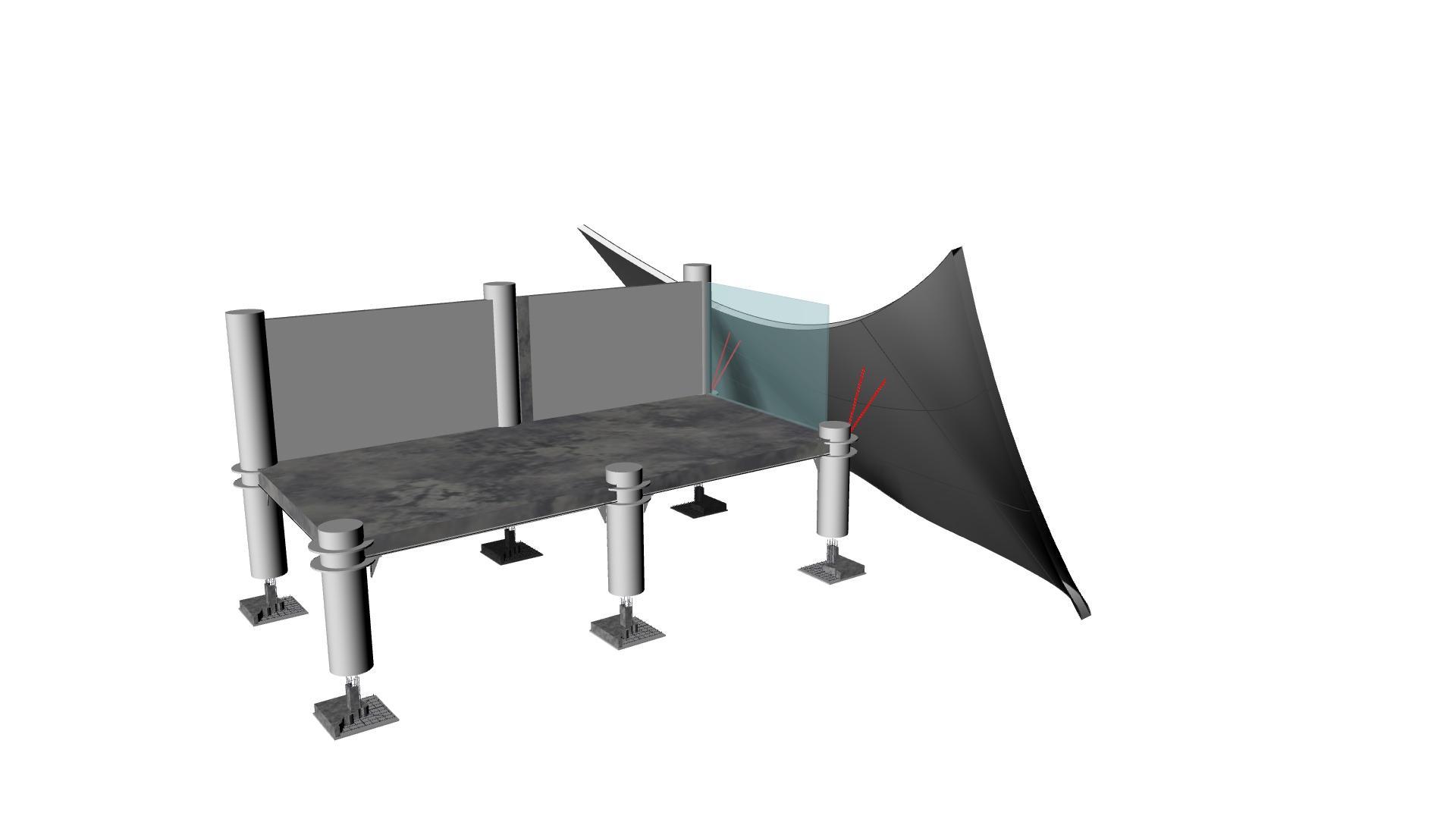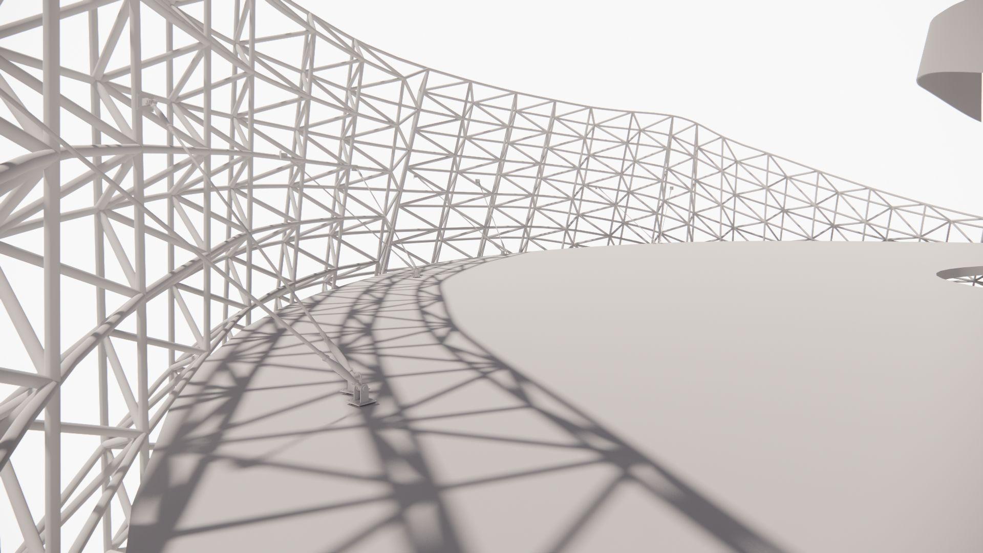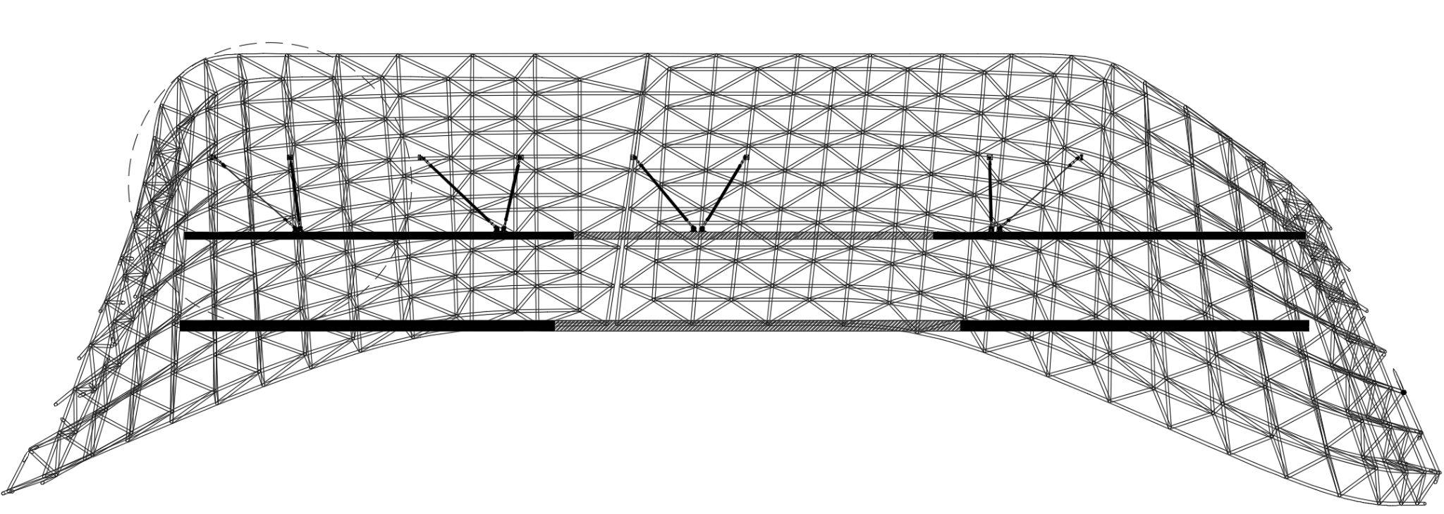 La piel se compone de una armadura a base de acero, esta armadura se sostendrá mediante cables tensores que se unen a las losas.